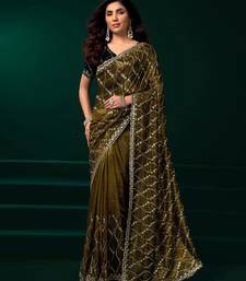 | • | Saree | : | Color- Mehendi / Fabric- Net |