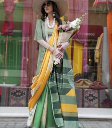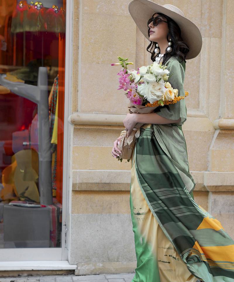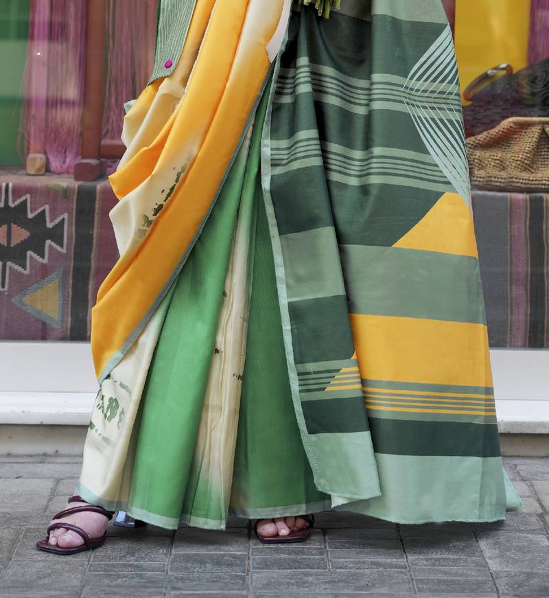 Multicolor northern light twirl silk modern digital print bollywood saree