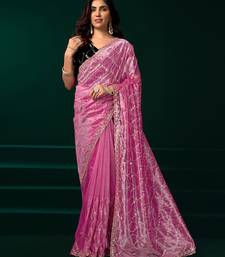 | Product Name | Pink Net Jaal Pattern Sequence Embroidery Thread Work Party Wear Saree | |