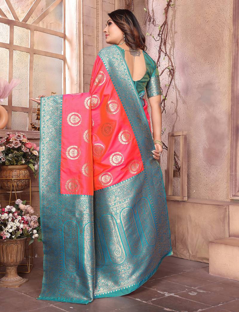 Product Name Pink Soft Silk Blend Banarasi Zari Woven Saree