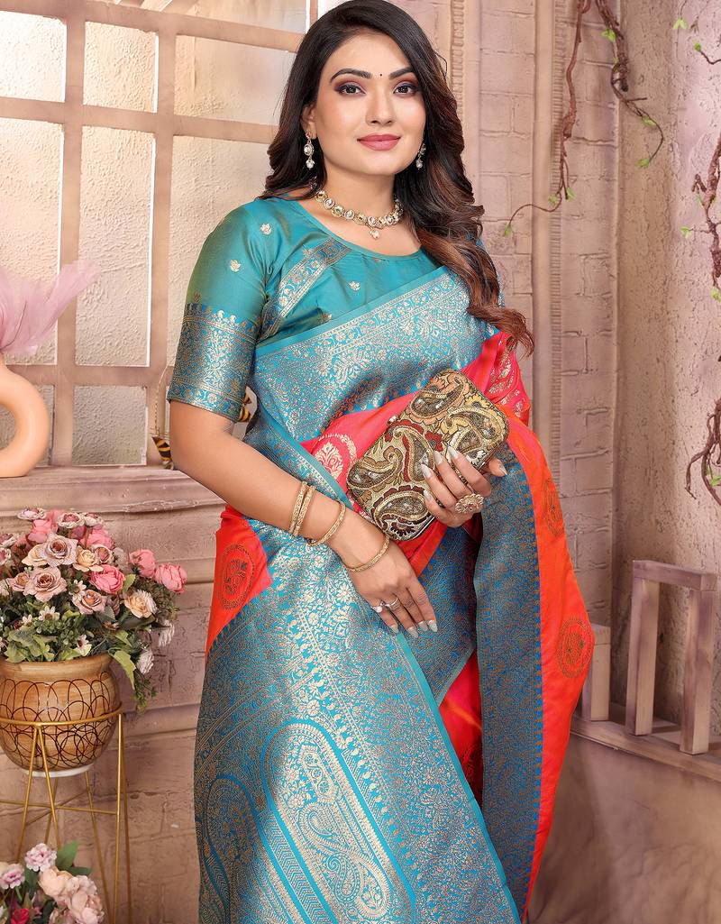 Whether You’re Attending A Family Function Or A Grand Celebration, This Saree Guarantees Style And Comfort In Every Drape. The Soft Silk Fabric Ensures A Graceful Fall, While The Luxurious Banarasi Zari Work Sparkles With Every Step. As One Of Mirraw’s Bestseller Designs In Women’s Ethnic Wear, It Pairs Beautifully With Traditional Jewelry Or Modern Accessories, Offering Endless Styling Possibilities. Stay Ahead Of The Fashion Curve With A Saree That’s Trending Across Mirraw’s Top Ethnic Collections.