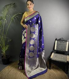 Purple soft lichi silk blend golden zari paisley banarasi saree