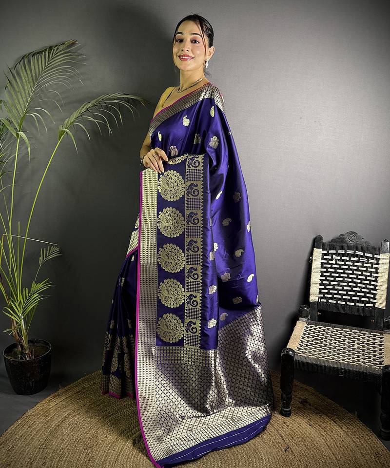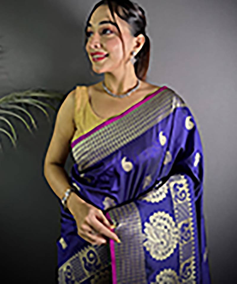 | Product Name | Purple Soft Lichi Silk Blend Golden Zari Paisley Banarasi Saree | |