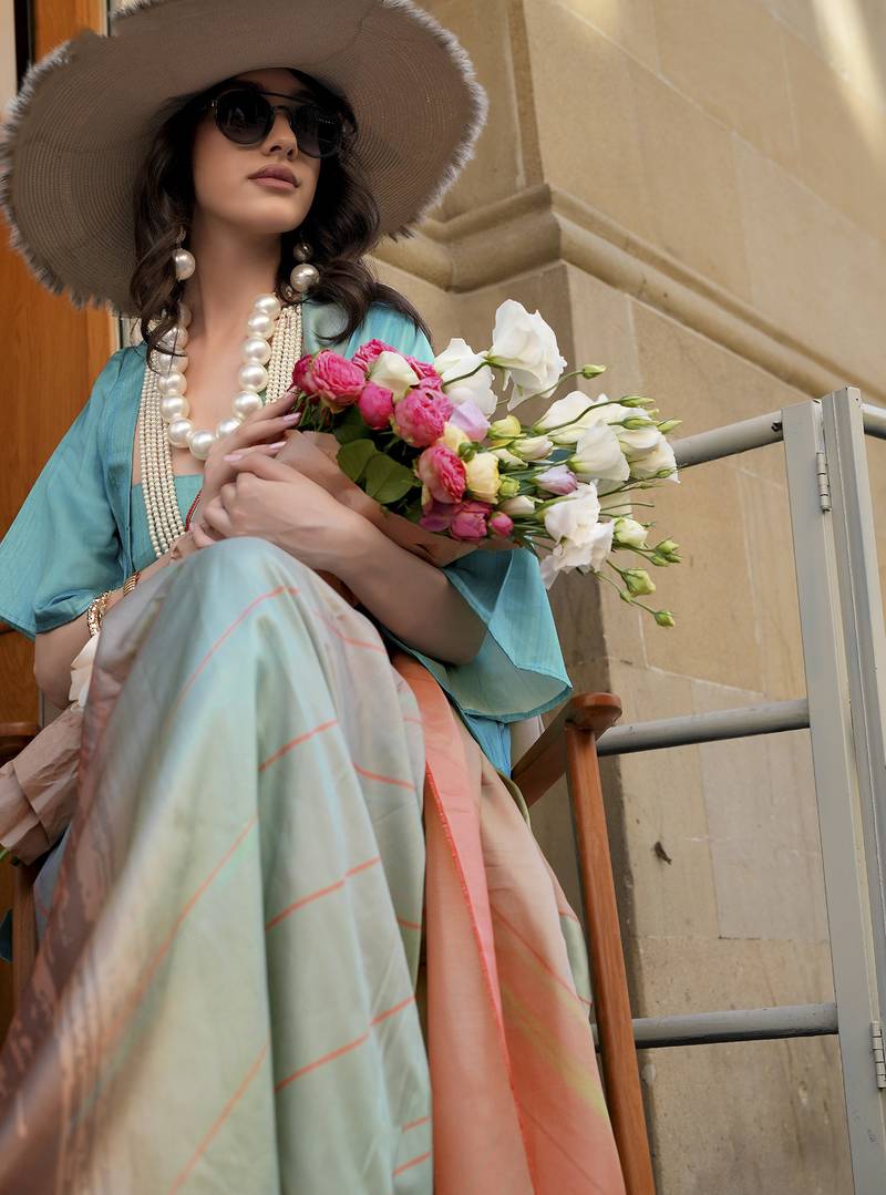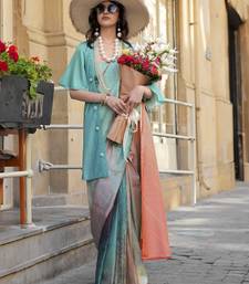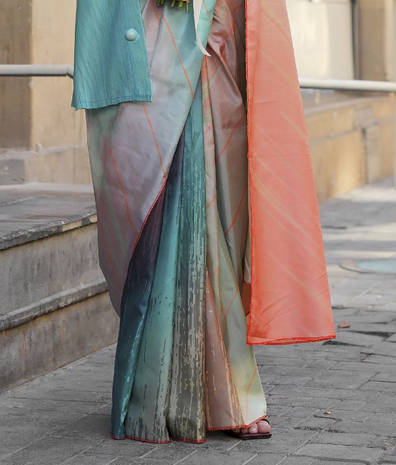 Teal & multicolor northern light twirl silk modern digital print bollywood saree