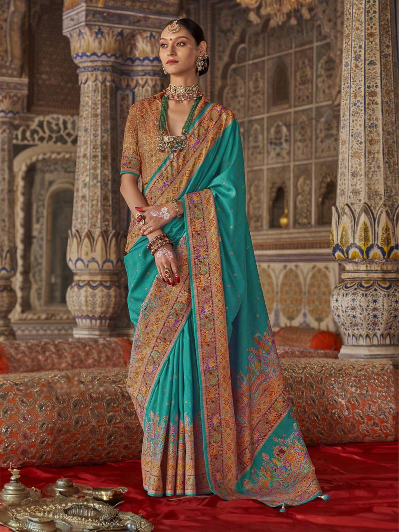 | • | Saree | : | Color- Teal / Fabric- Silk Blend |