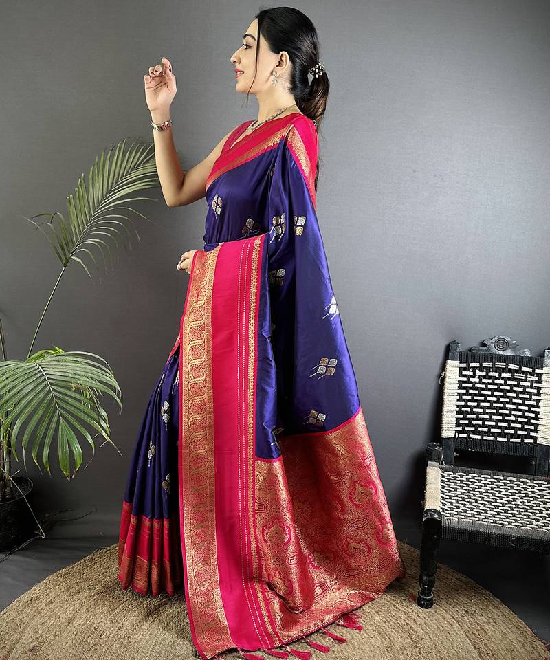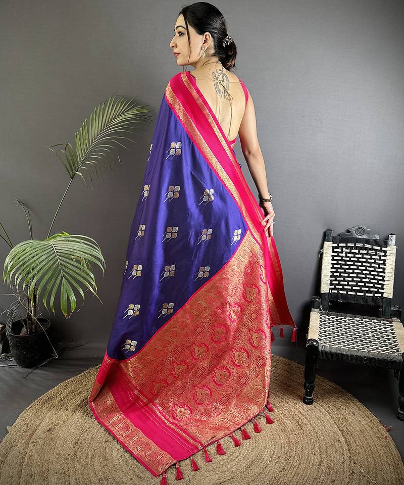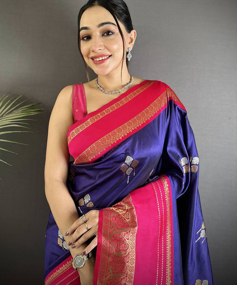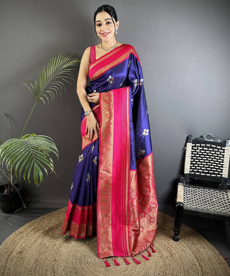 | Product Name | Voilet Soft Silk Blend Woven Dual Zari Work Banarasi Saree | |