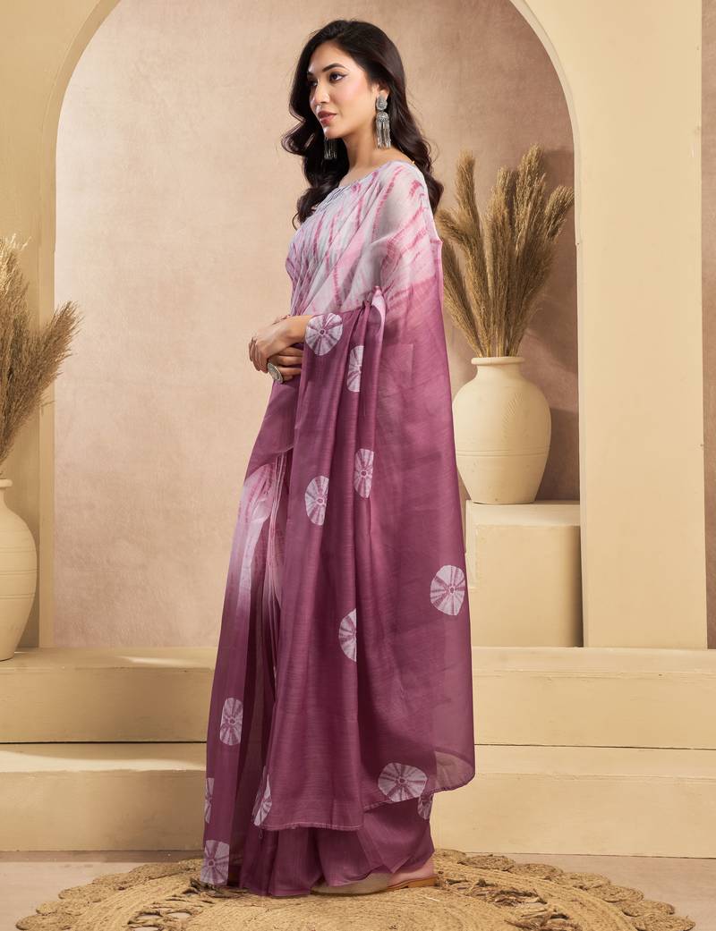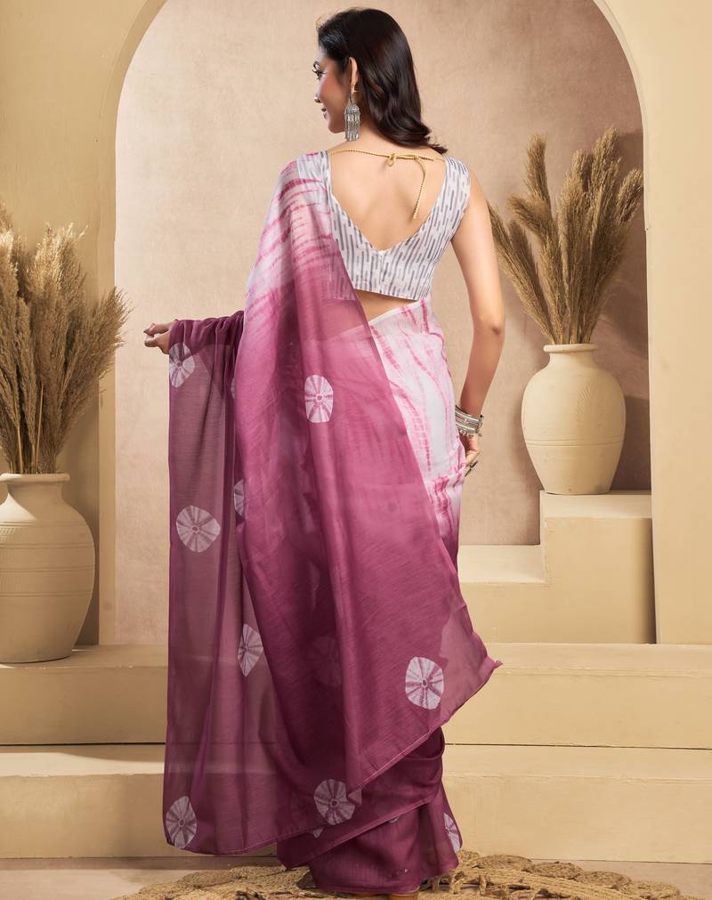 | Product Name | Wine & White Linen Bandhani Printed Ready To Wear Saree | |