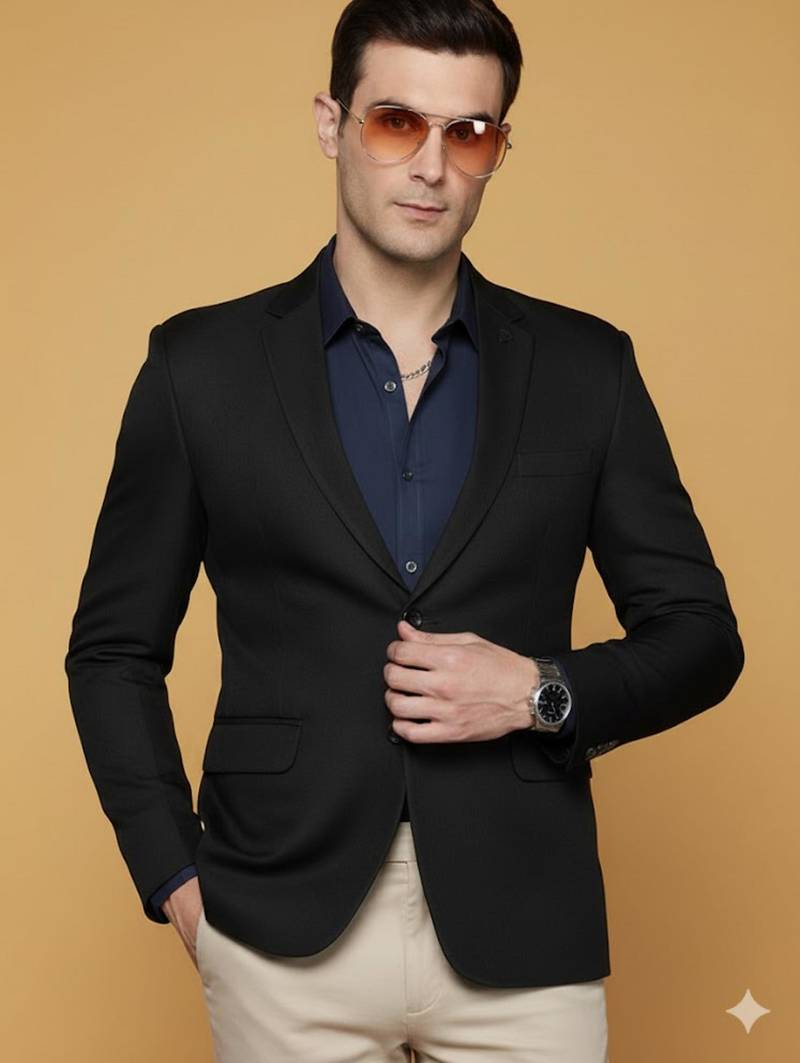 Product Description | Add A Touch Of Sophistication To Your Ensemble With This Black Single Breasted Blazer Featuring An Elegant Self Design Pattern. Tailored In A Slim Fit, It Boasts A Notched Lapel, Two Button Closure, And Long Sleeves For A Sleek, Contemporary Look. With Two Flap Pockets, A Chest Welt Pocket, And Two Jetted Pockets, This Blazer Offers Both Style And Functionality, Making It An Ideal Choice For Formal And Semi Formal Events. |