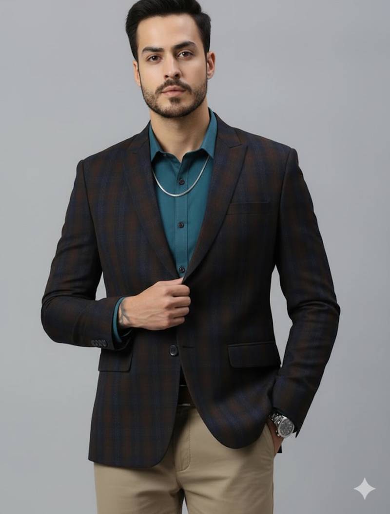 Product Name | Men's Double Breasted Regular Fit Navy Blue Blazer With Brown Checks | |