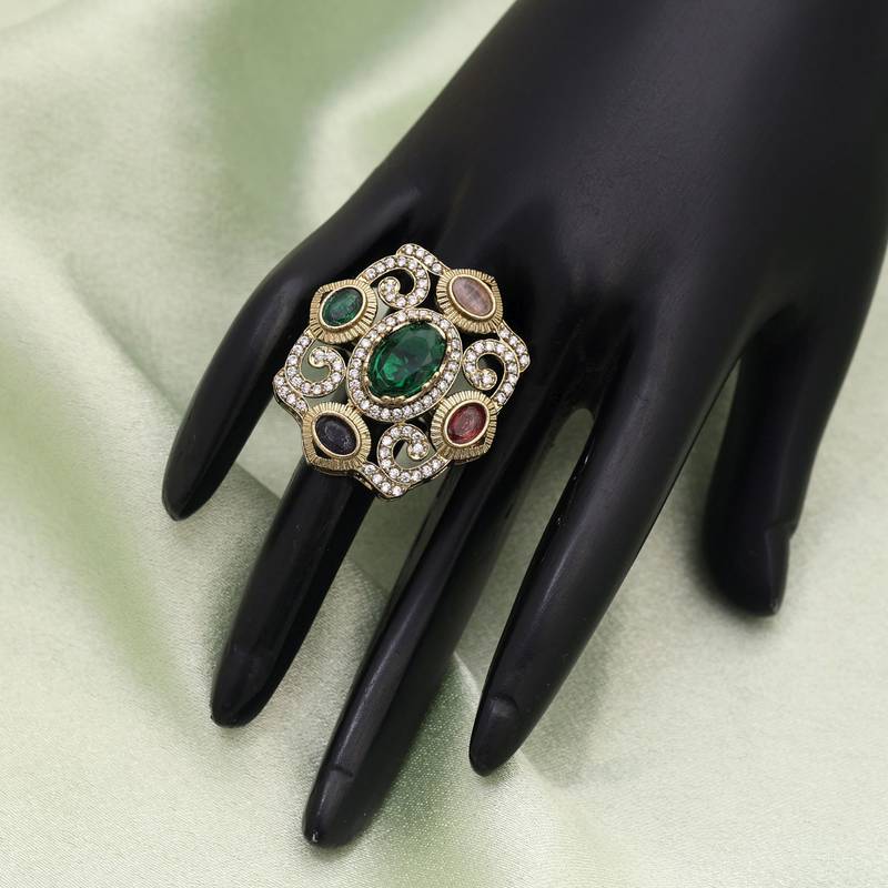 | Product Description | Ring Size: Adjustable | Diameter Length: 3.50 Cm X Width: 3.30 Cm | Metal: Brass With Good Quality Apala Polish // Mehandi Gold Plated | Color: Multi | Stone: American Diamond & Monalisa Stone | Gross Weight: 10.00 Grams | Package Content: 1 Piece Of Rings |