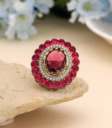 | Product Description | Ring Size: Adjustable | Diameter Length: 3.40 Cm X Width: 3.00 Cm | Metal: Brass With Good Quality Apala Polish // Mehandi Gold Plated | Color: Rani | Stone: American Diamond & Monalisa Stone | Gross Weight: 9.00 Grams | Package Content: 1 Piece Of Rings |