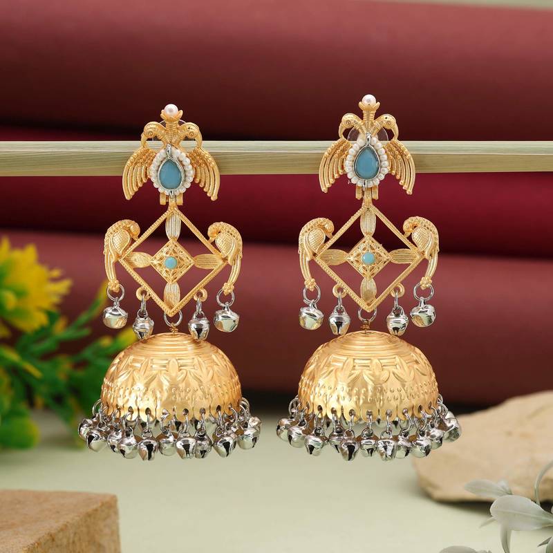 | Product Description | Earring Length: 8.50 Cm X Width: 4.00 Cm Metal: Alloy With Good Quality Gold Plated | Color: Sky Blue | Stone: Glass Stone | Gross Weight: 44.00 Grams | Package Content: 1 Pair Of Earring | Back Finding: Post With Friction | Earring Style: Jhumka |
