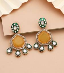 Product Description | Earring Length: 6.00 Cm X Width: 2.70 Cm | Metal: Alloy With Good Quality Gold Plated | Color: Yellow | Stone: Kundan | Gross Weight: 32.00 Grams | Package Content: 1 Pair Of Earring | Back Finding: Post With Friction Back X Earring Style: Dangle |