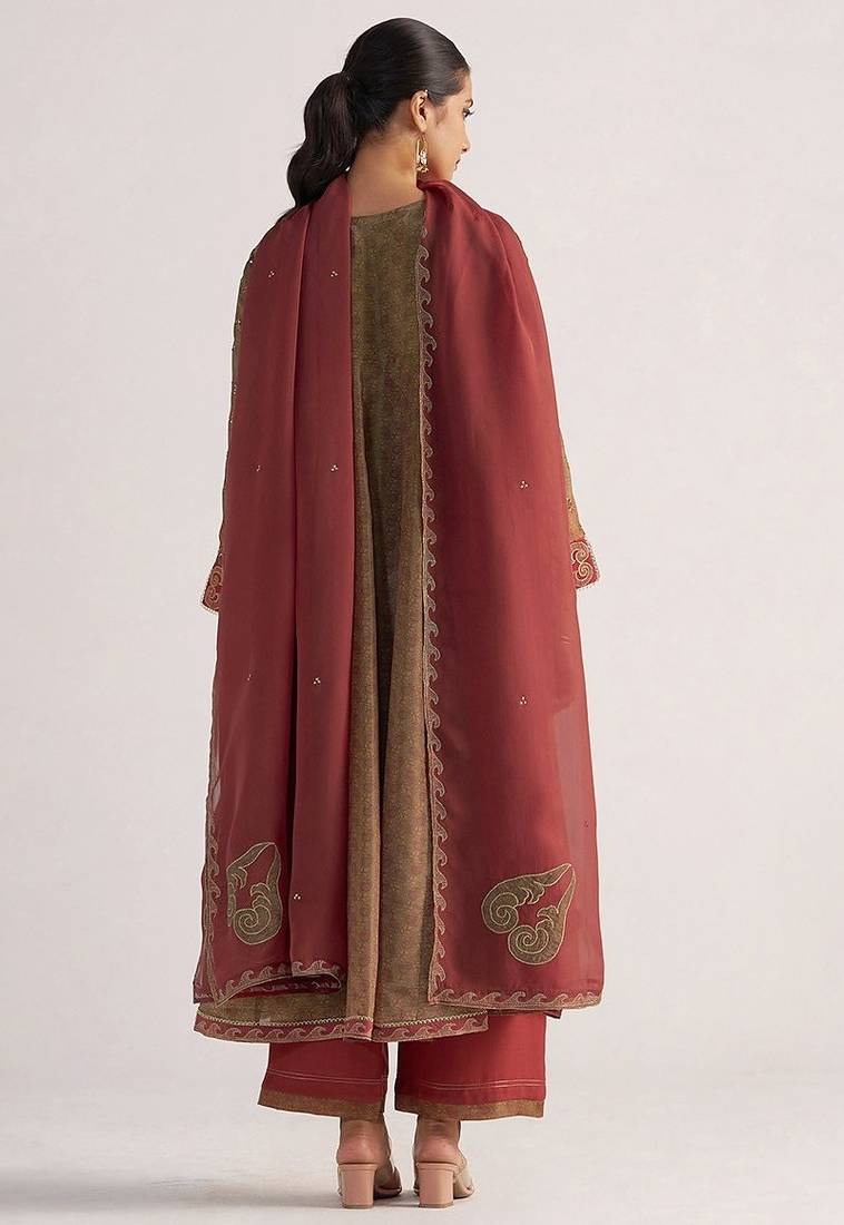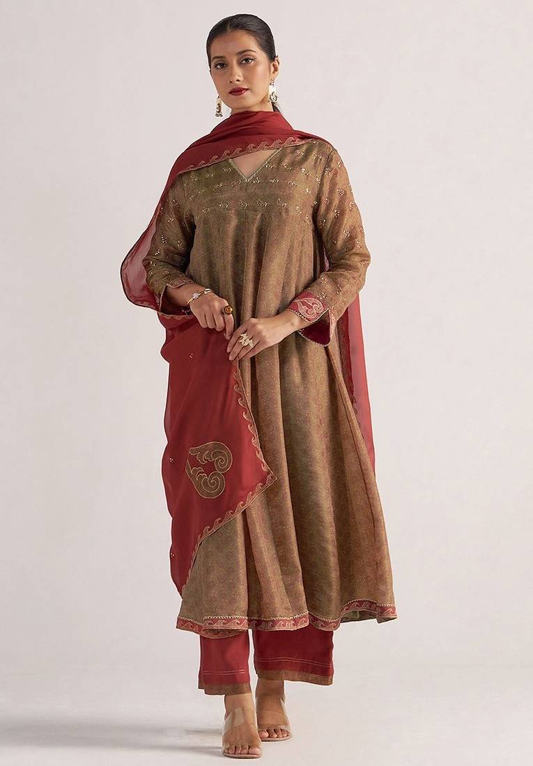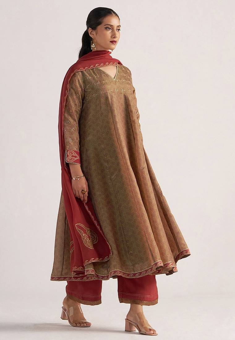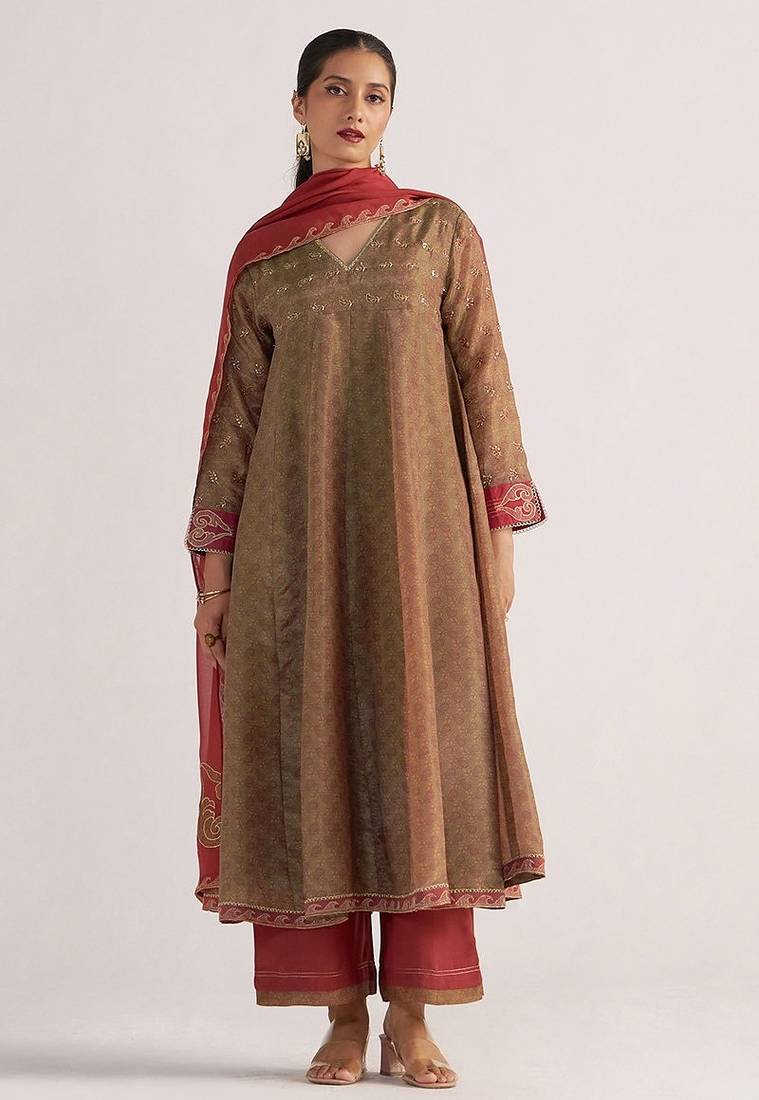 | Product Name | Lark Beige And Dull Maroon Tissue Print Kurta Set | |