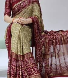 Yellow color bandhni printed with foil work moss art silk saree with unstitched blouse