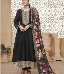 Vichitra silk black embroidered anarkali salwar kameez semi stitched