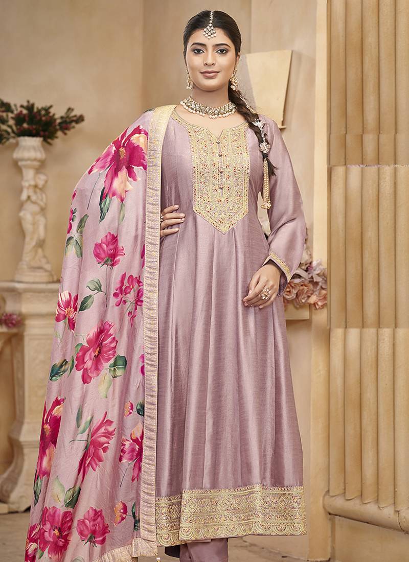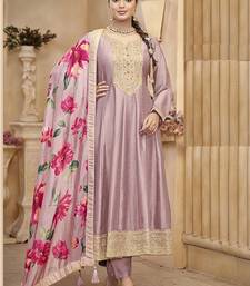 Vichitra silk onion pink embroidered anarkali salwar kameez semi stitched