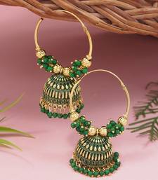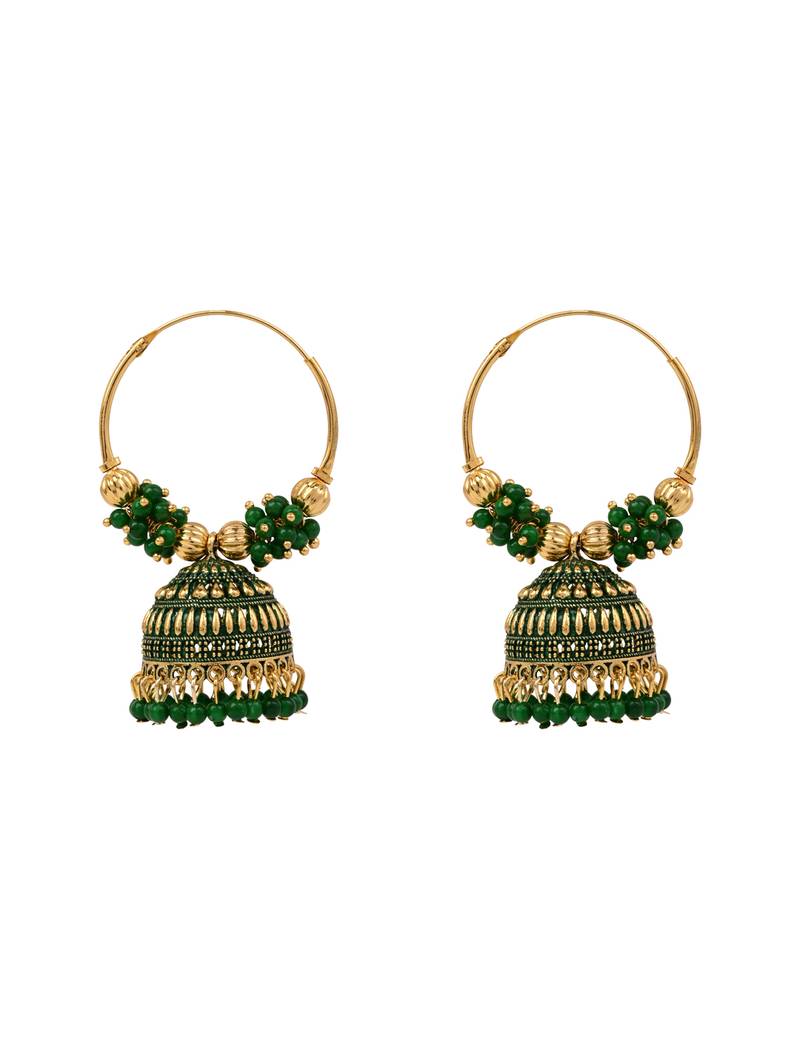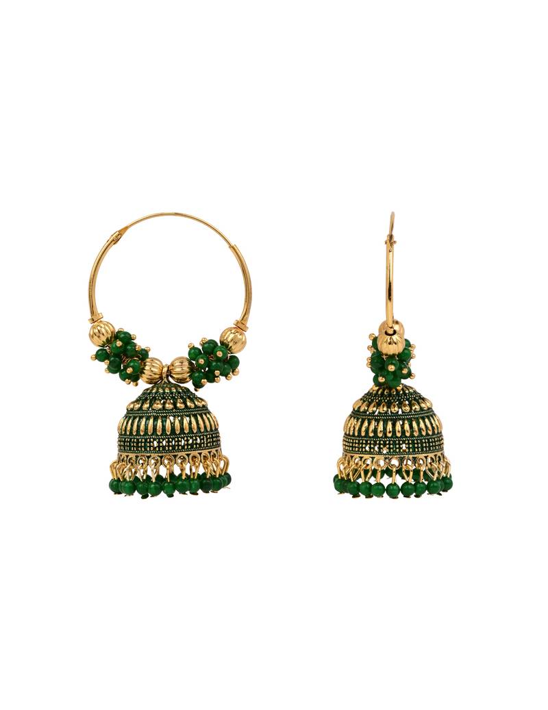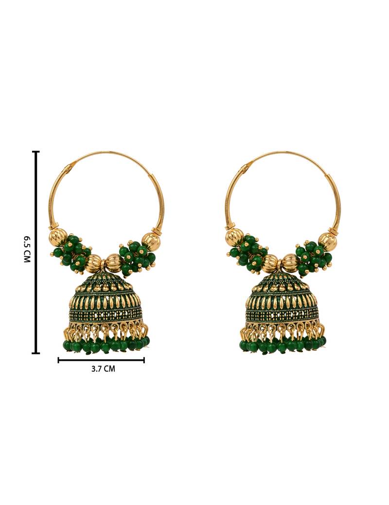 Product Name | Gold Plated Traditional Handcrafted Beaded Jhumka Hoop Earrings For Women (Green) | |