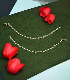 Gold plated traditional pearl hair chain::Earchain accessories with hook for women girls