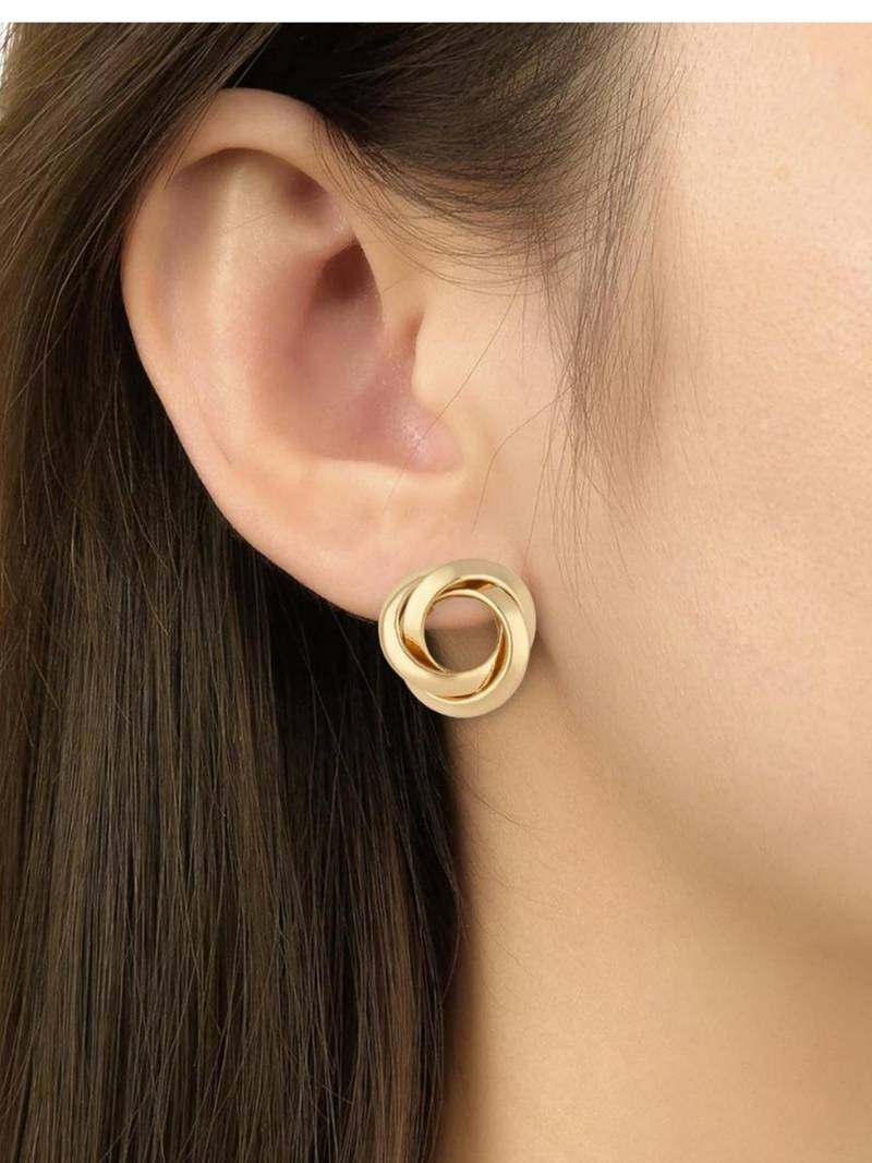 Latest trendy stylish gold plated geometric twist chunky stud earrings for women and girls