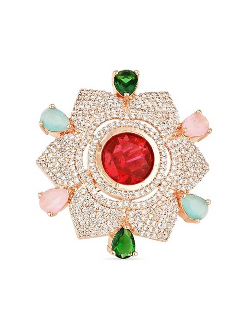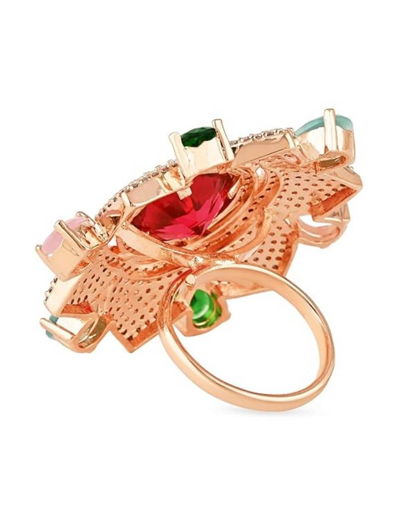 Rose Gold Plated Special Multicolor Floral Design Diamond Adjustable Finger Ring For Women/Girls
