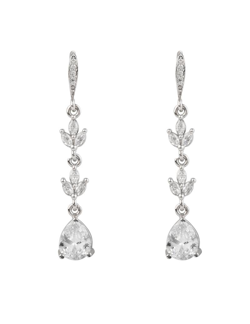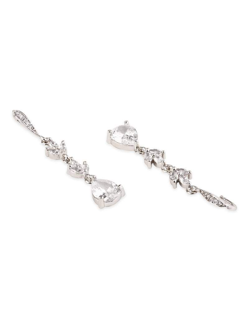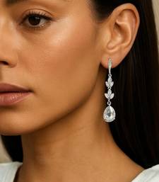 Silver plated cubic zirconia american diamond drop earrings for women