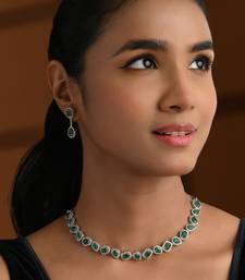 Product Name | Silver Plated Cubic Zirconia American Diamond Necklace & Earrings Jewellery Set For Women | |