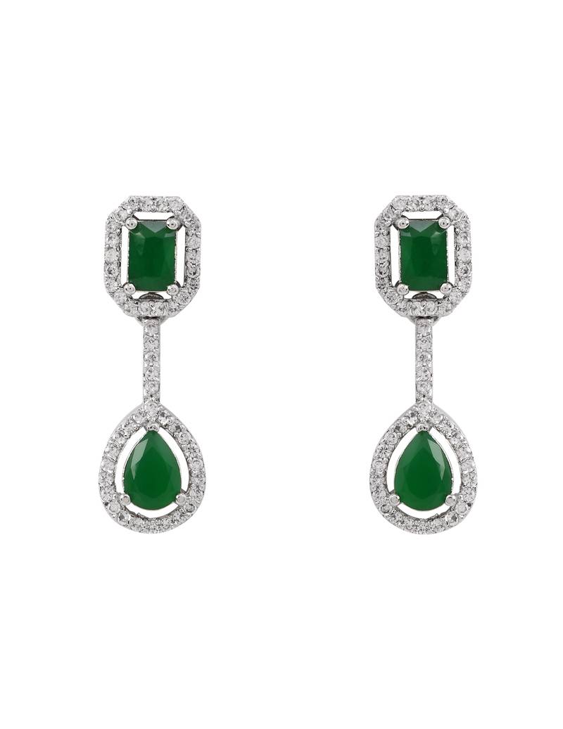 Silver plated cubic zirconia american diamond necklace & earrings jewellery set for women
