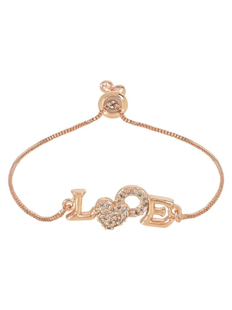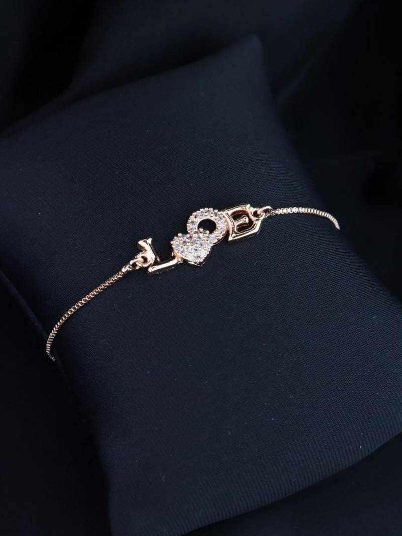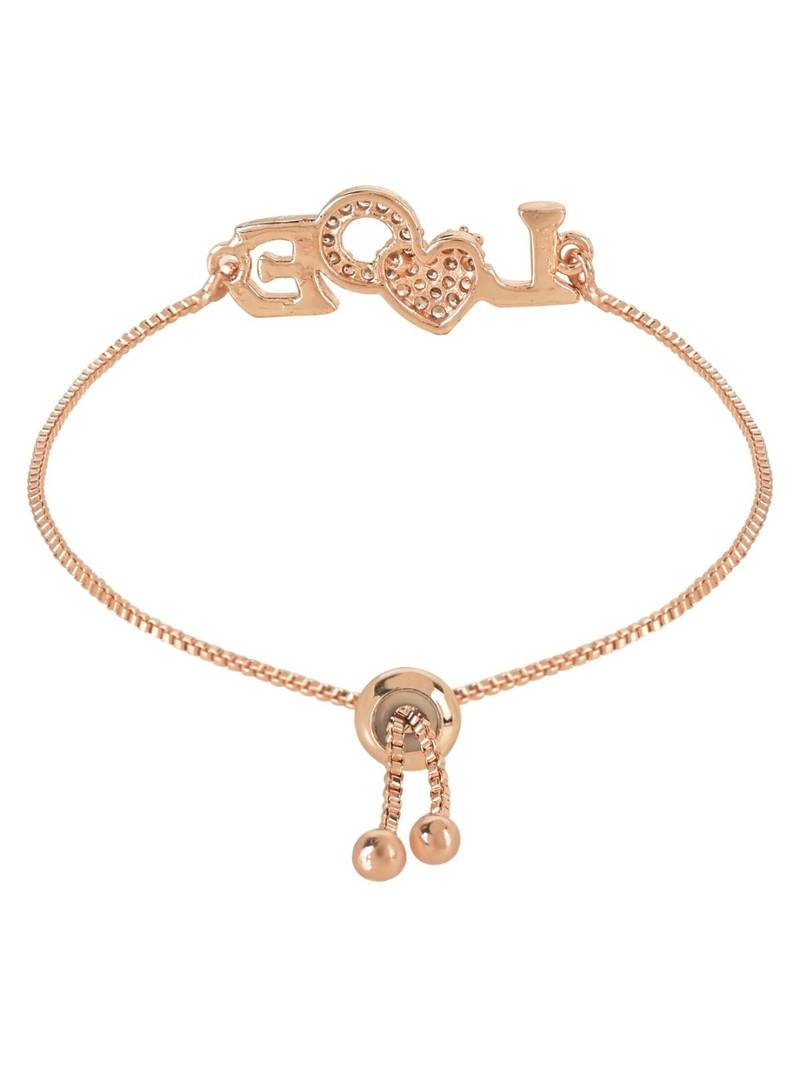 Stylish rose gold plated cubic zirconia american diamond adjustable bracelet for women