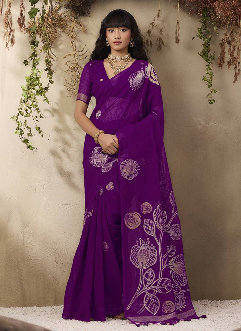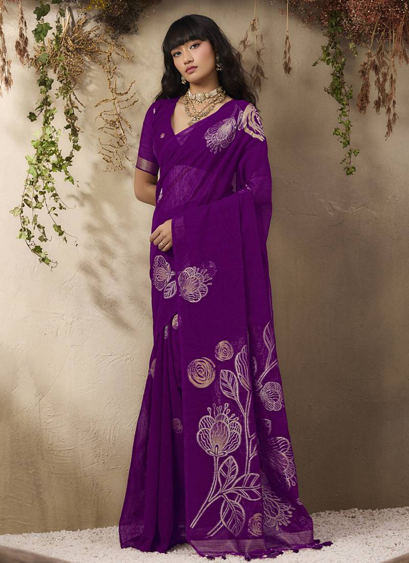 Dark purple munga silk handloom weaving saree