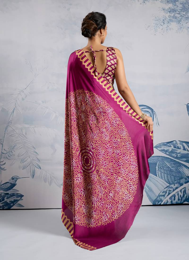 Magenta modal satin ajrakh print saree