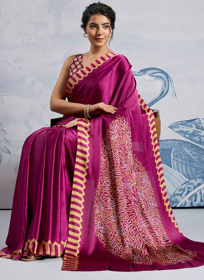 | • | Saree | : | Color- Magenta / Fabric- Satin |