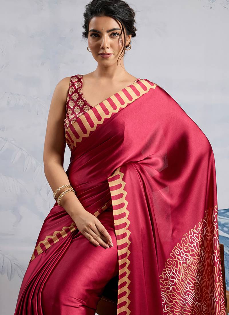 | Product Name | Maroon Modal Satin Ajrakh Print Saree | |