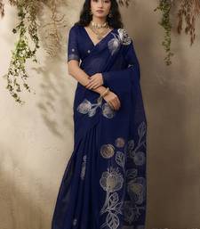 Navy blue munga silk handloom weaving saree