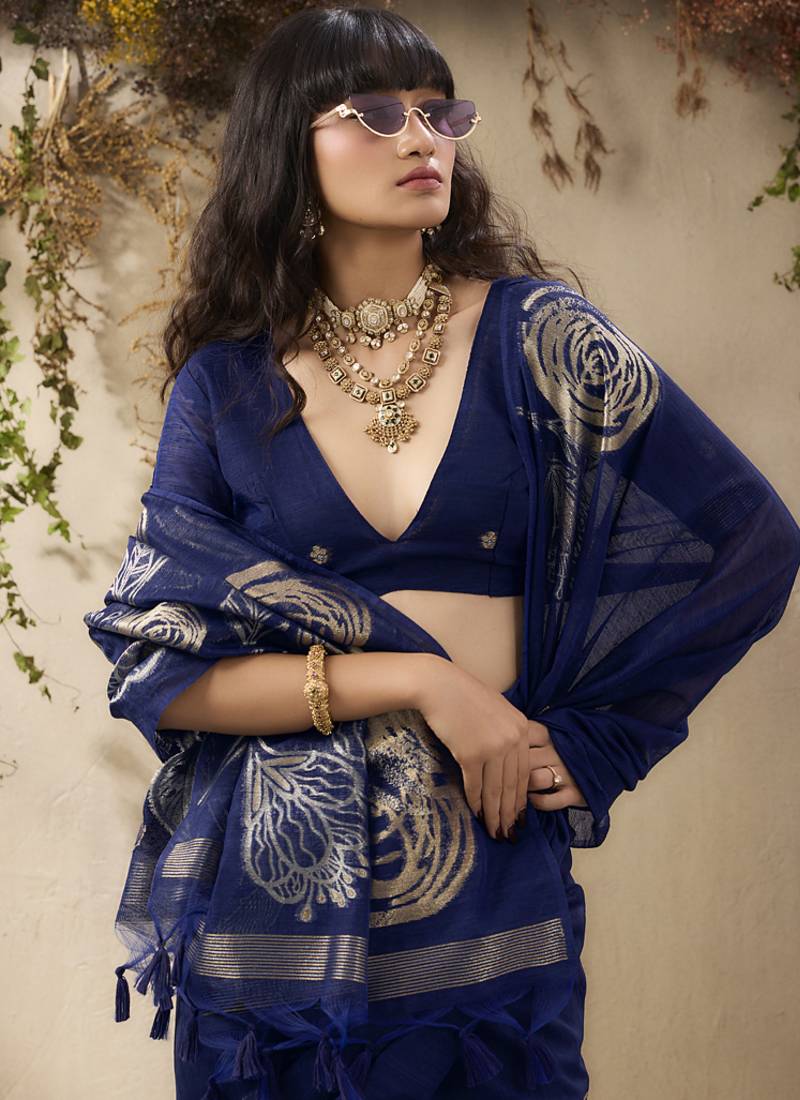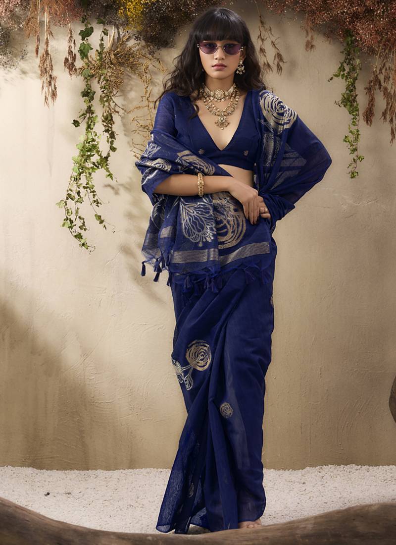 | Product Name | Navy Blue Munga Silk Handloom Weaving Saree | |