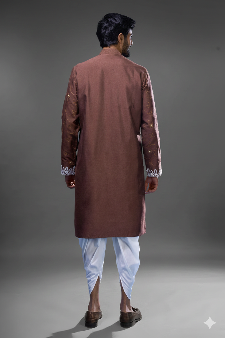 Brown silk kurta patiala for men's