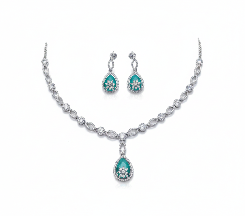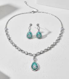 Product Name Silver Plated Sea Green Teardrop Stone Studded Jewellery Set