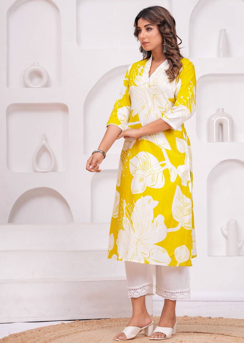 | Product Name | Yellow Cotton Sequance Work Kurta For Women | |