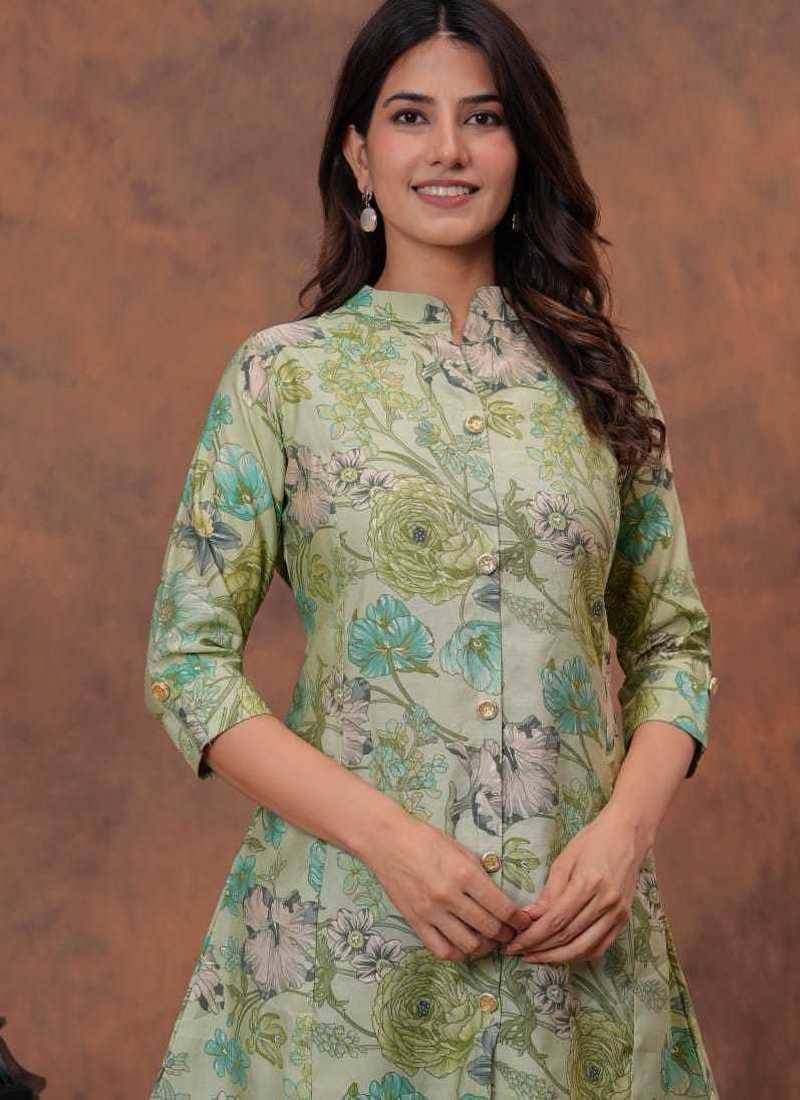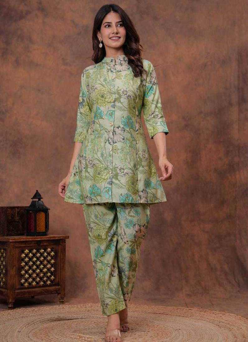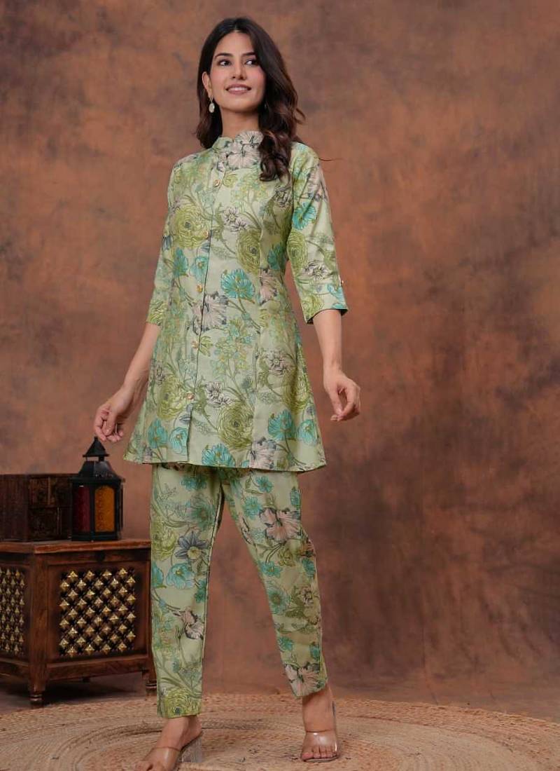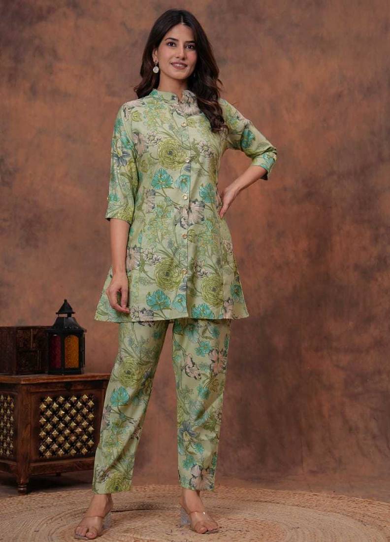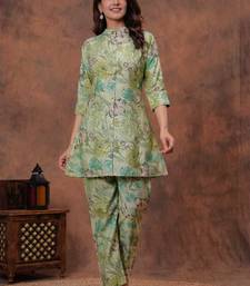 | Product Name | A Green Digital Flower Printed Muslin Party Wear Coord Sets | |