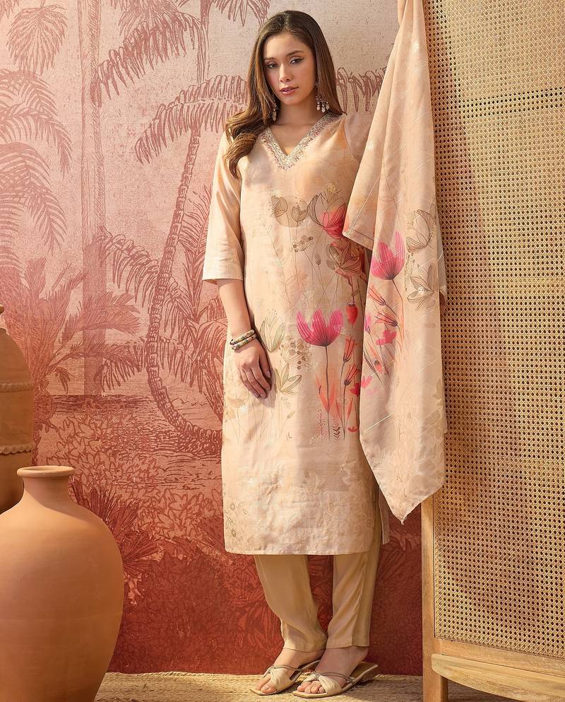 | Product Name | Women Chanderi Printed Beige Kruta Set | |