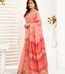 Women peach linen ikat saree