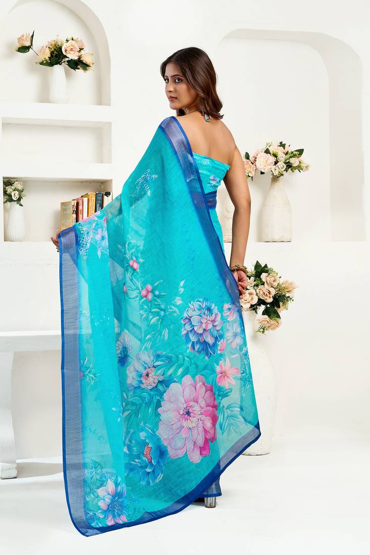 | Product Name | Women Turquoise Linen Floral Saree | |