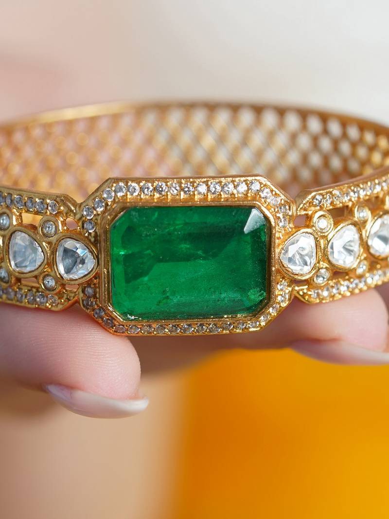 Product Description | Enhance Your Glow With The Zamrud Kundan Bracelet, A Stunning Handcrafted Kundan Bracelet With Radiant Green Stones For An Evergreen, Regal Charm.