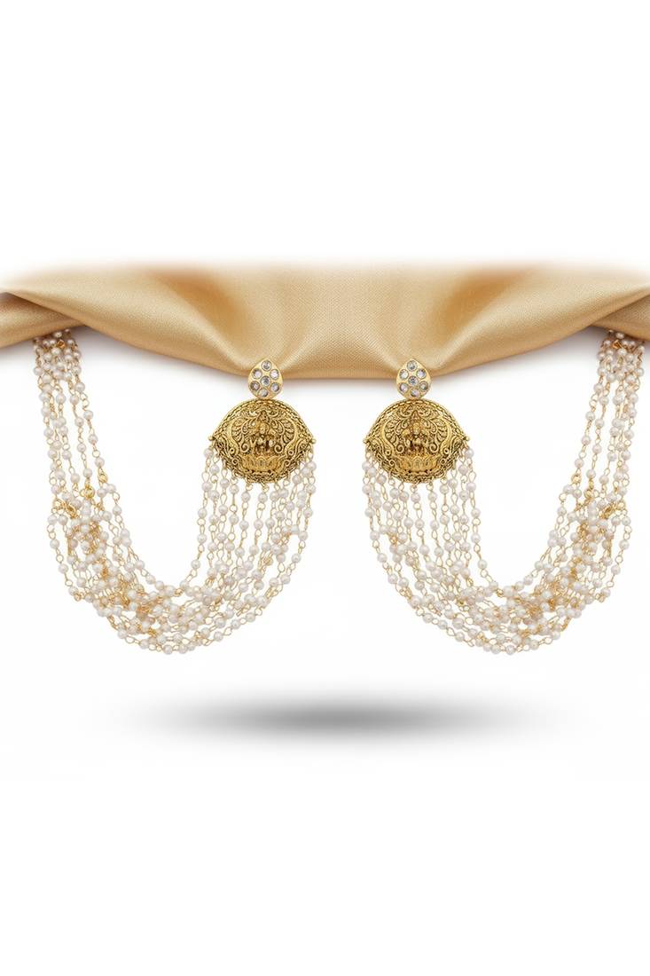 Product Name | White Laxmi Design Temple Jewellery Kaan Chain Earrings For Women | Antique Gold Finish With Clustered Pearls | |
