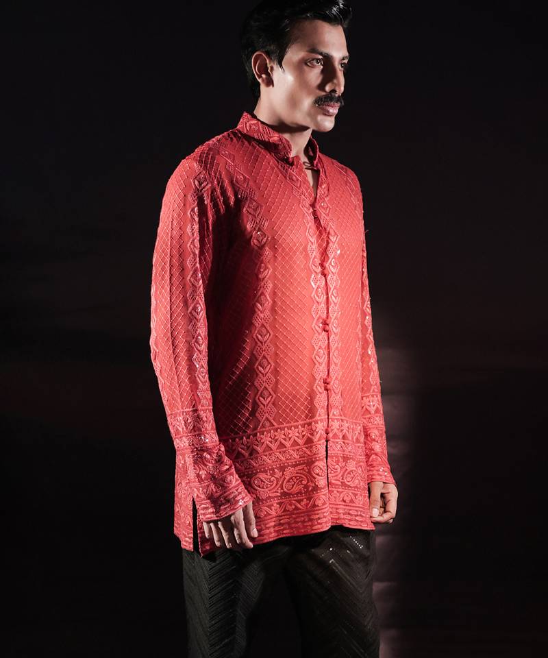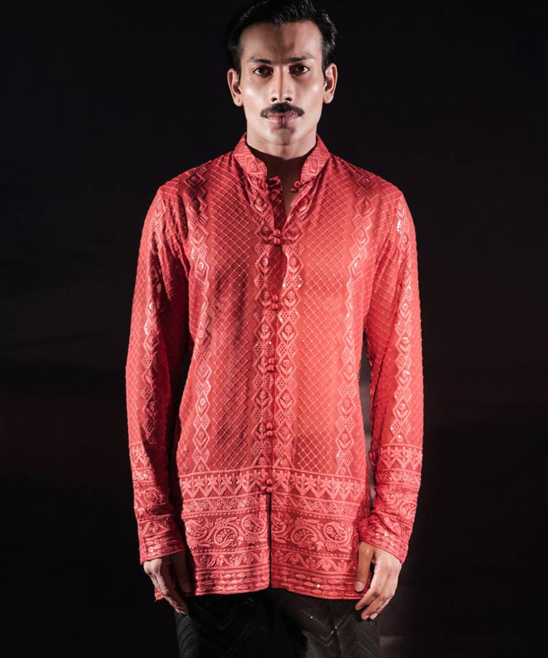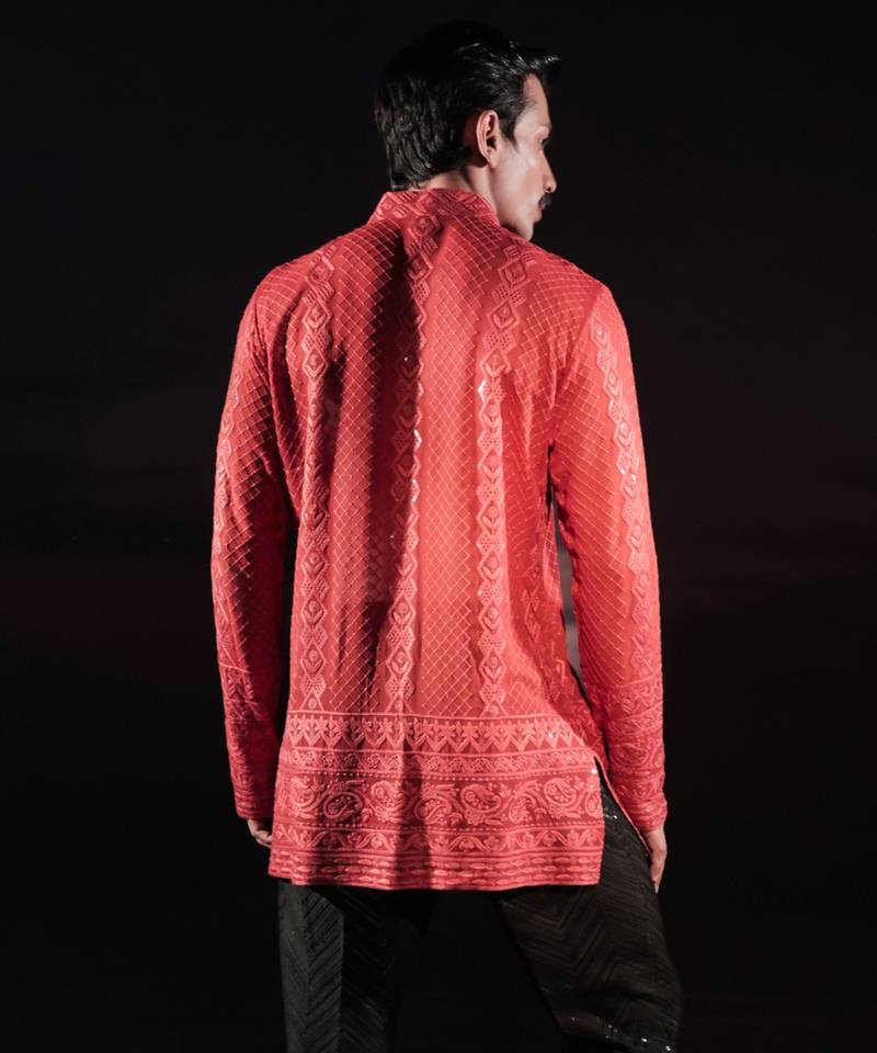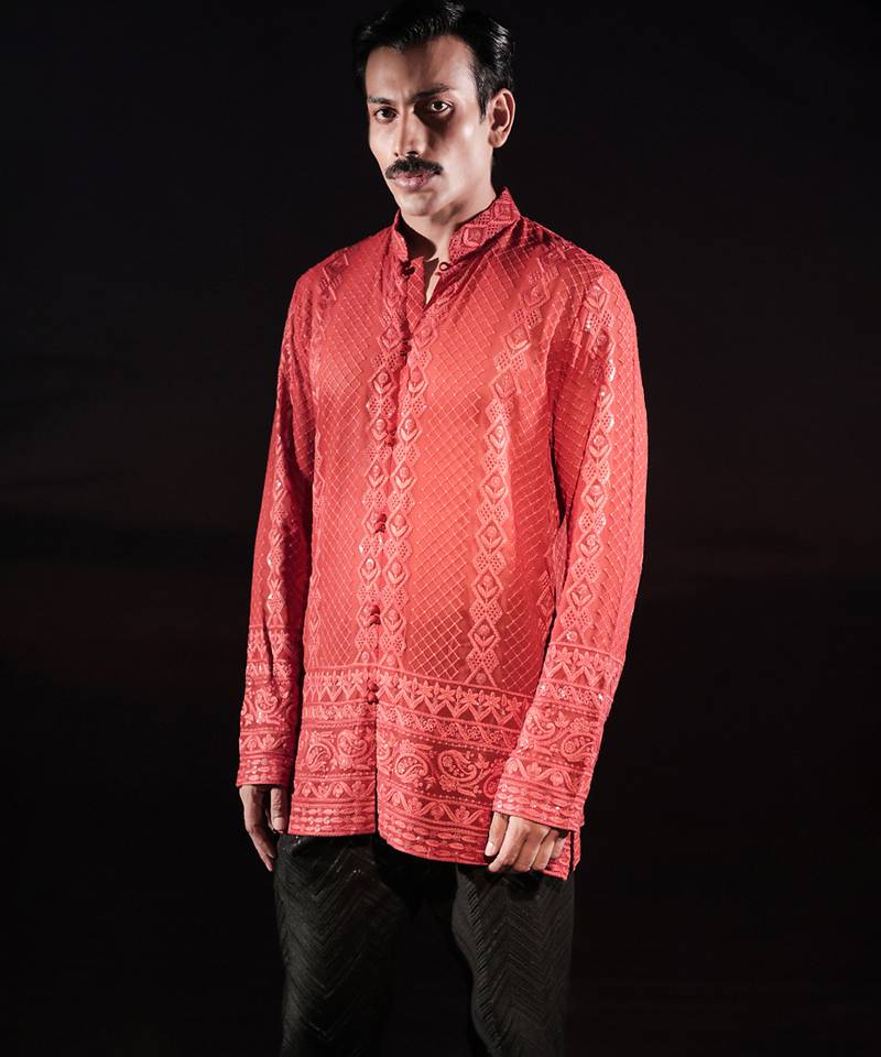 | Product Description | Step Into Elegance With Our Rust Chikankari Georgette Short Kurta, Finished With A Front Opening Adorned With Potli Buttons
