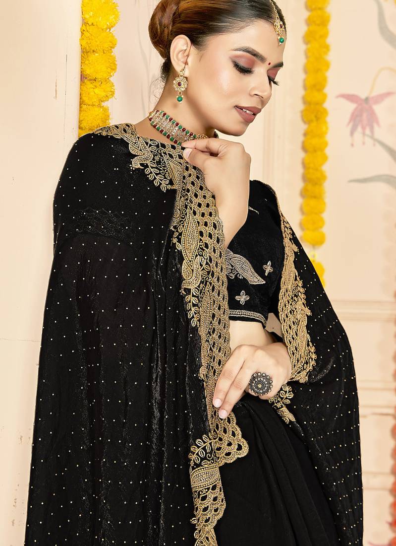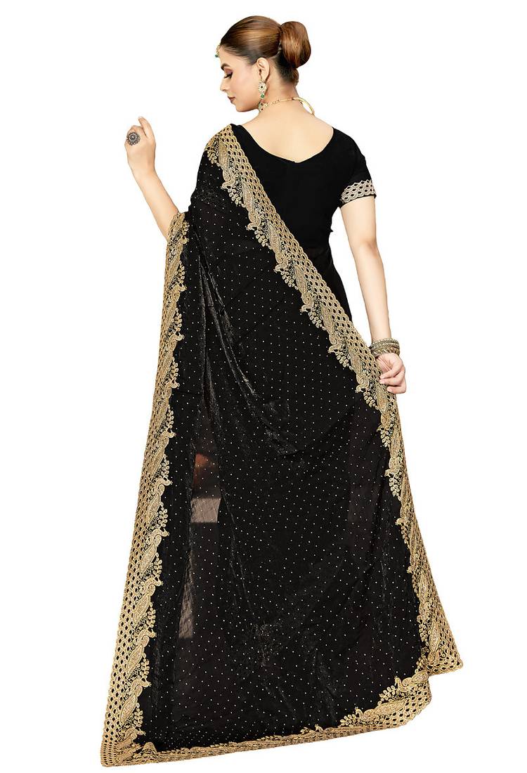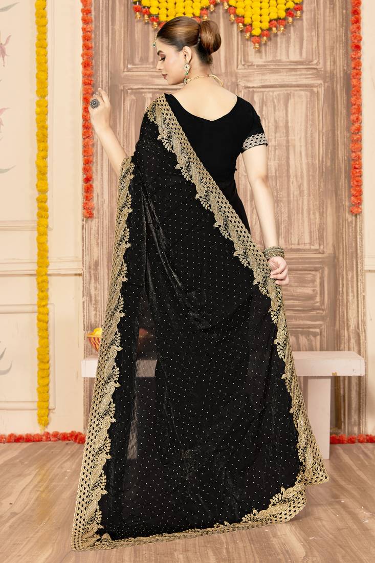 | Product Name | Designer Black Zari Siroski Embroidery Work Silk Blend Saree | |
