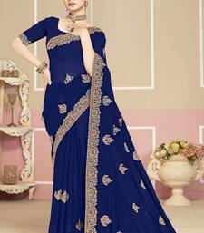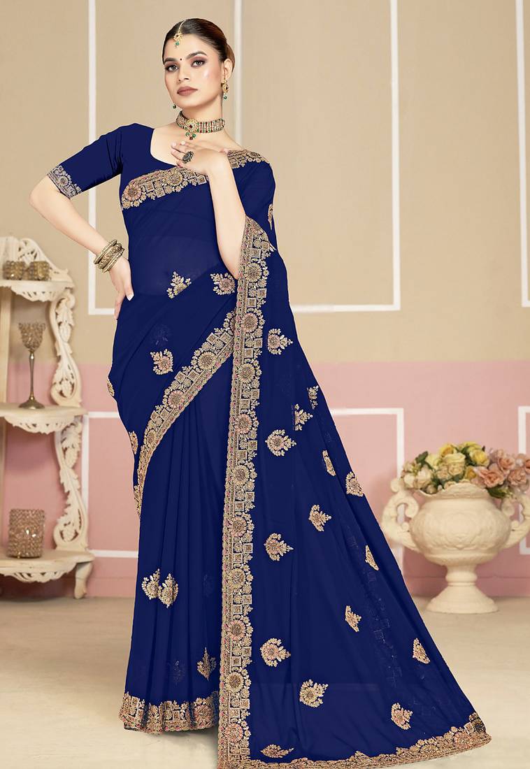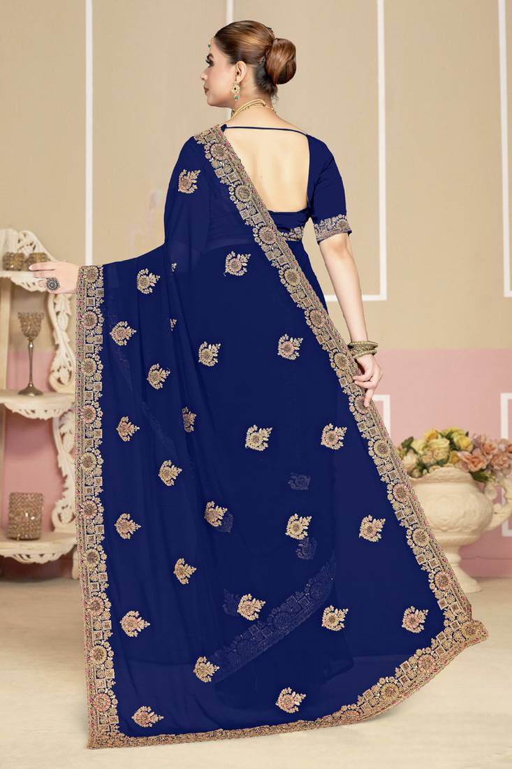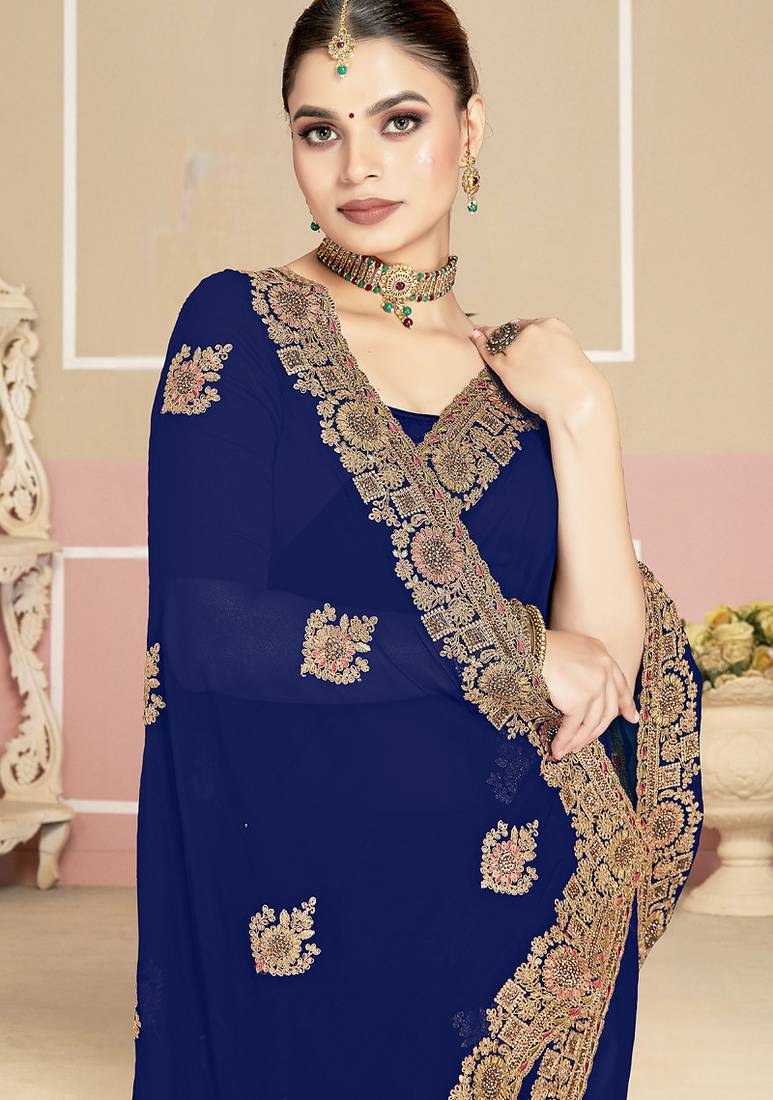 Designer navy blue coding zarkan embroidery georgette saree