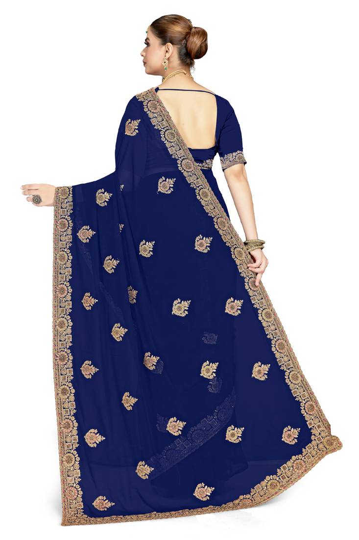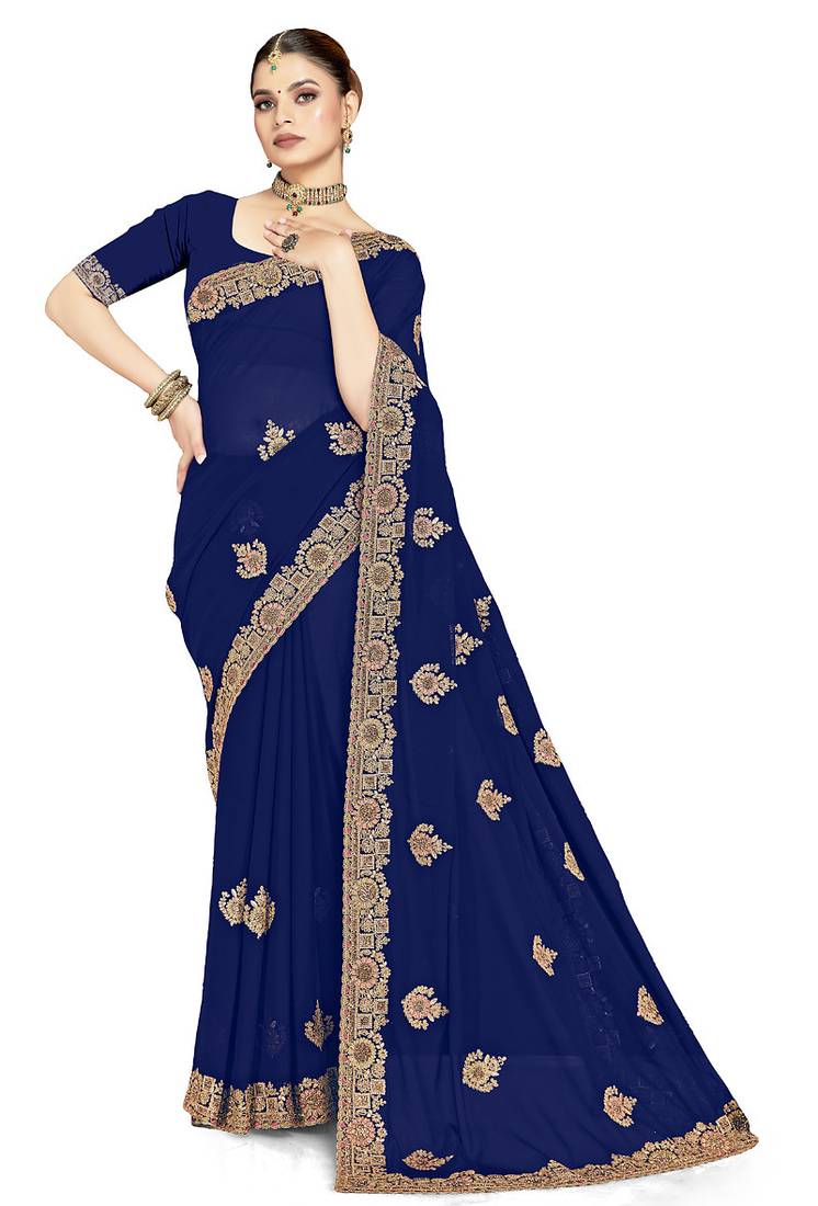 | Product Name | Designer Navy Blue Coding Zarkan Embroidery Georgette Saree | |
