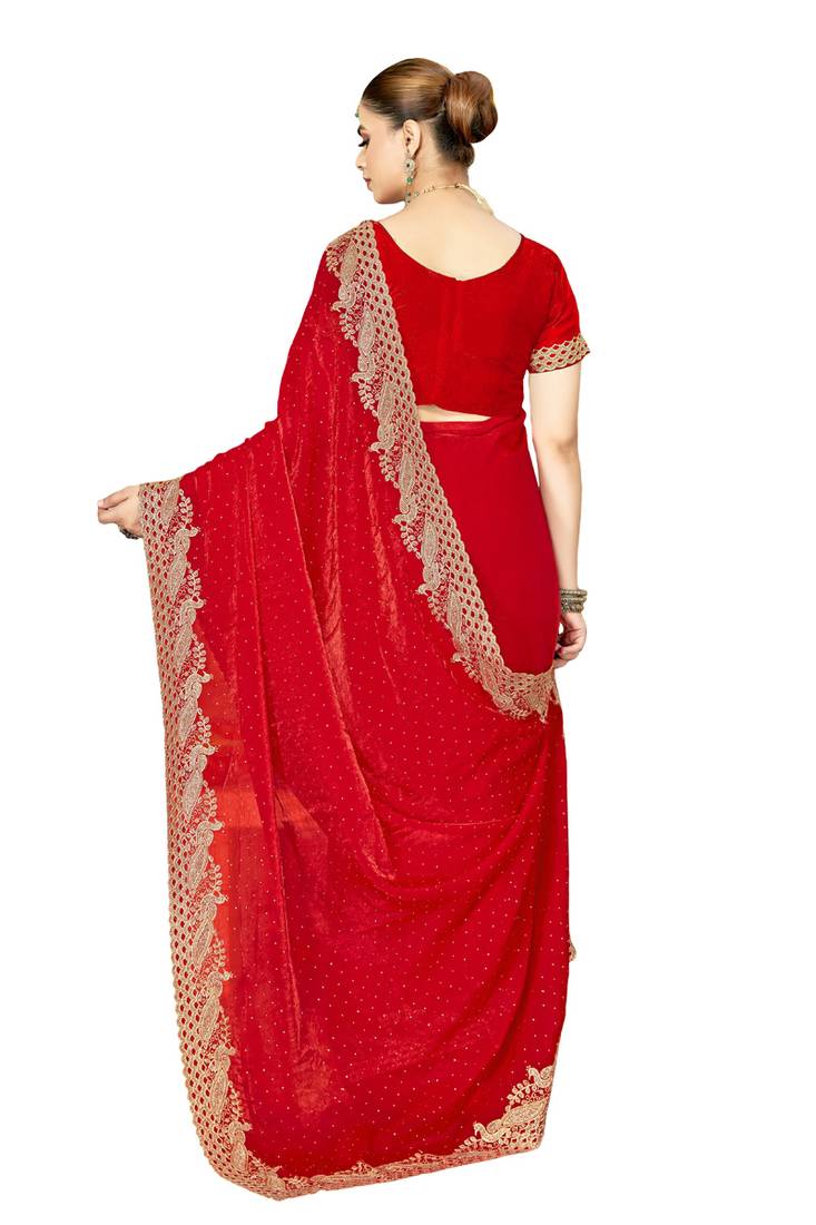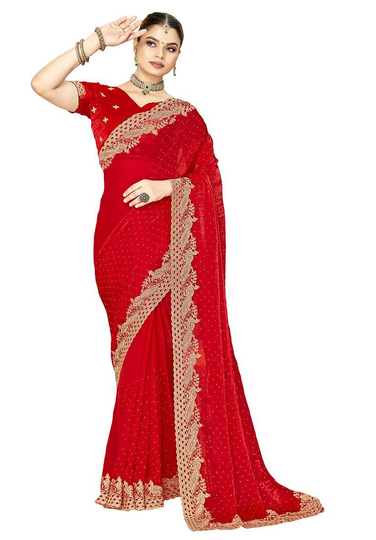 | Product Name | Designer Red Zari Siroski Embroidery Work Silk Blend Saree | |