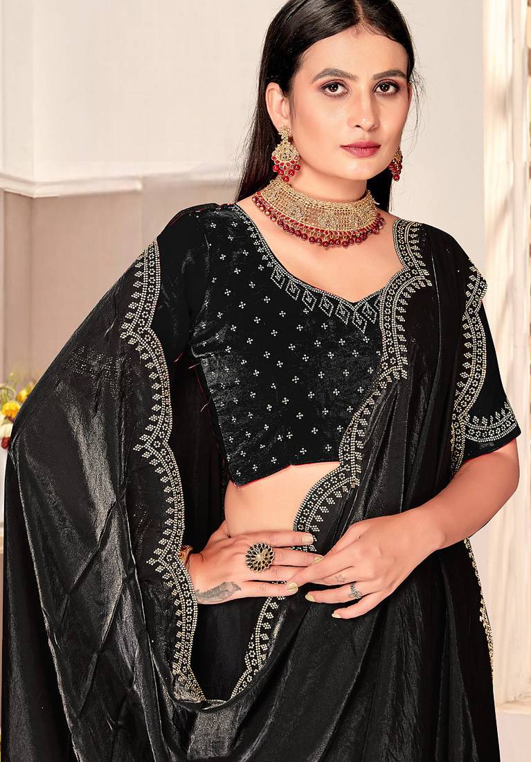 Product Name Traditional Indian Black Handwork Zarkan Border Silk Blend Saree